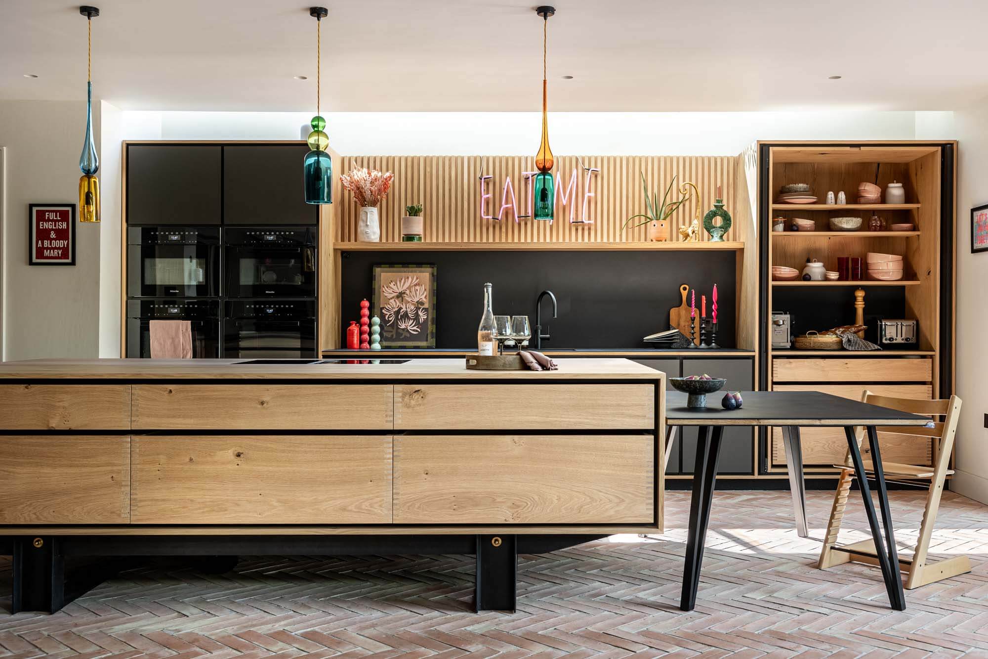 The result is a bold, characterful kitchen that combines bespoke craftsmanship, natural textures, and everyday practicality—an outstanding example of a handcrafted kitchen in Brighton.