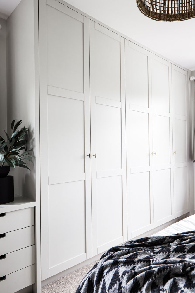 - Panel Shaker Style Wardrobes: Crisp vertical stiles, clean profile, minimal detailing to support a calm, modern interior